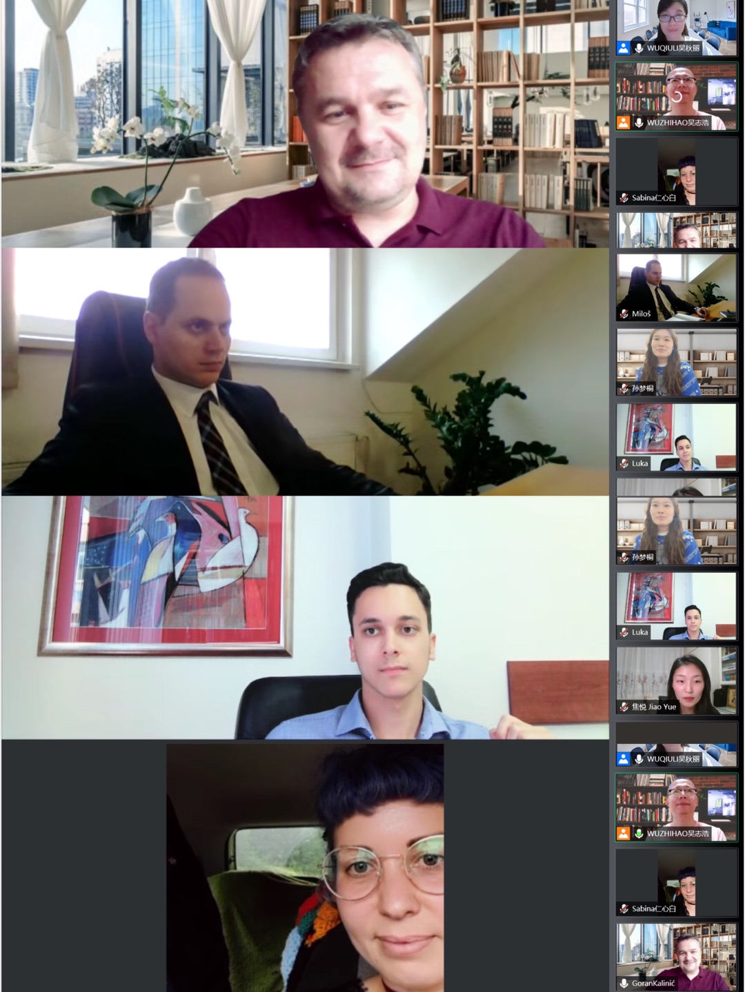 波黑努布尔独立大学国际部主管GORAN、老师MILOS、学生SABINA、LUKA作为学员代表发言,真诚表达了对老师们的感谢和对中华传统文化的喜爱。