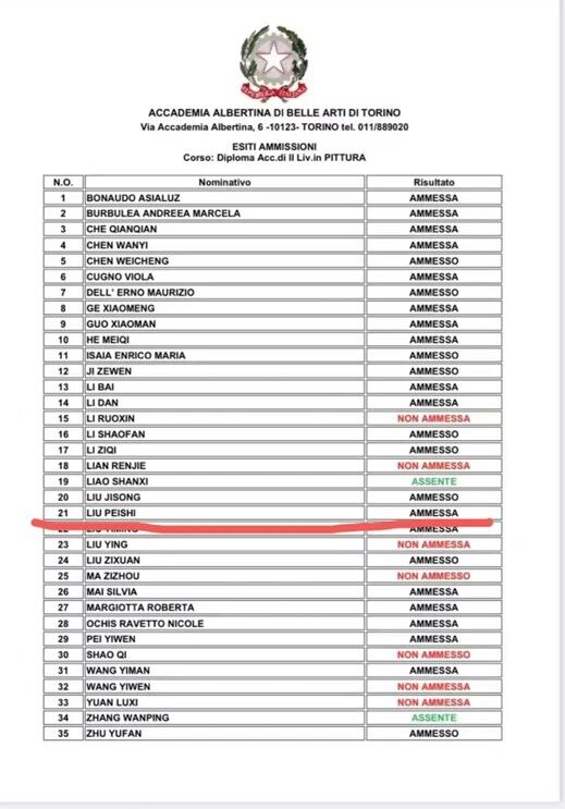 近日,美术学院专接本班2023级绘画专业刘佩实同学成功被意大利都灵美术学院录取。
